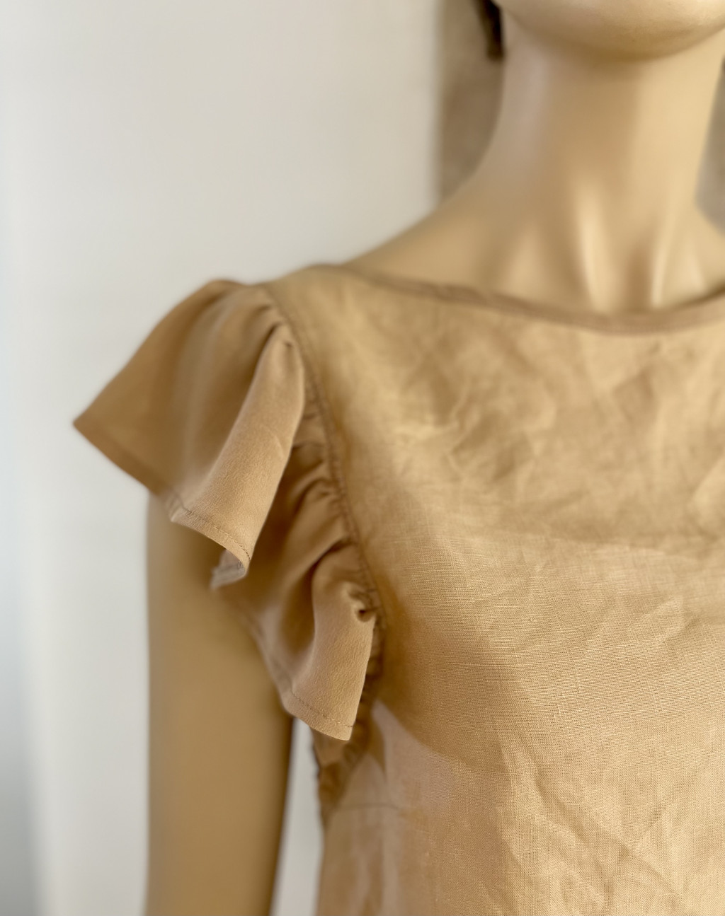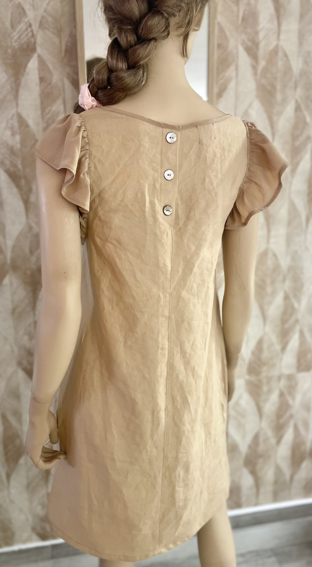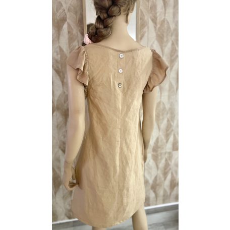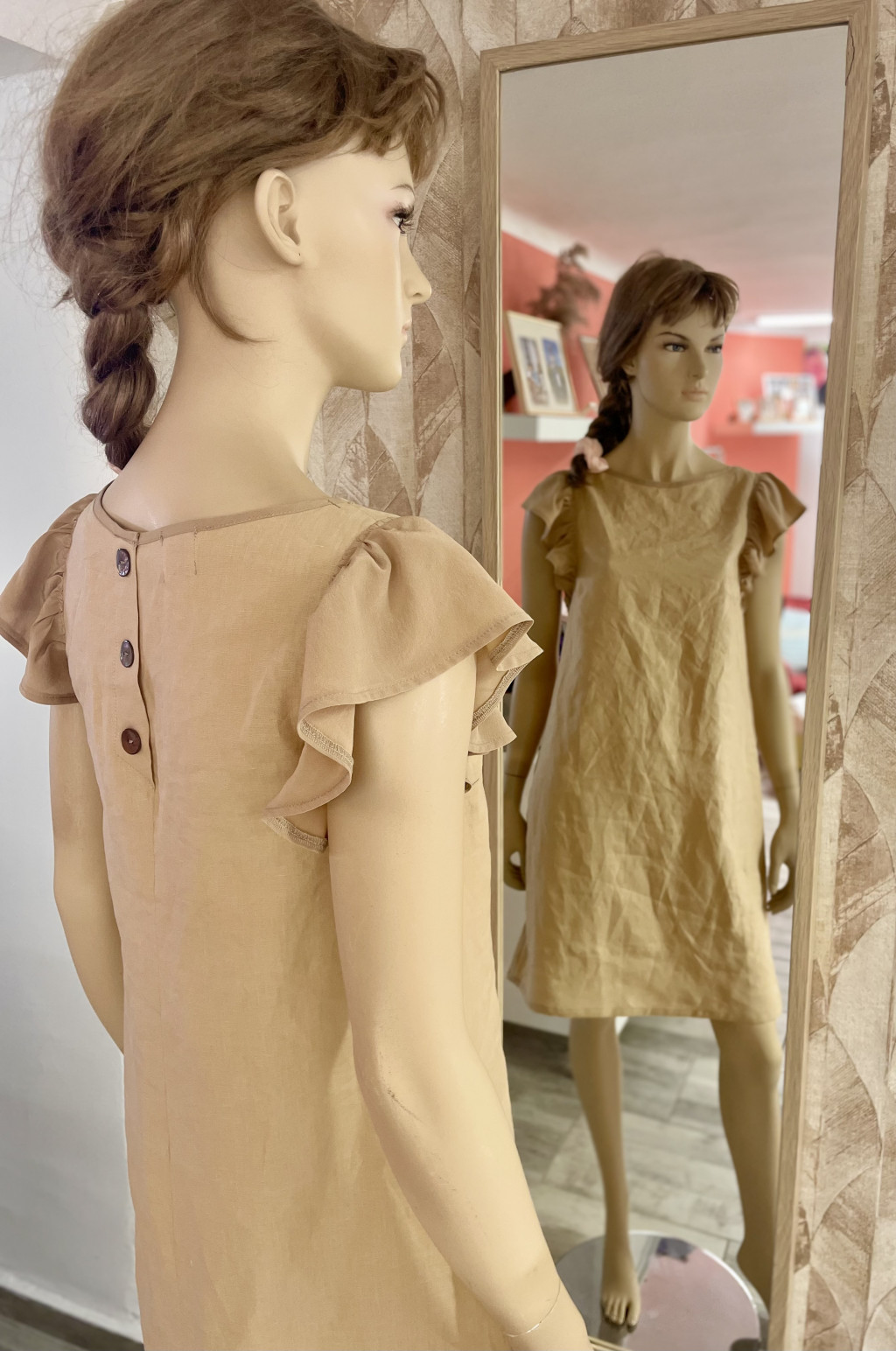 Fedezd fel a kompromisszummentes stílust ebben a különleges, drapp színű lenvászon ruhában, ahol minden apró részlet a minőségről és a természet tiszteletéről mesél. Ez a darab a minimalista dizájn és a prémium alapanyagok tökéletes harmóniája.