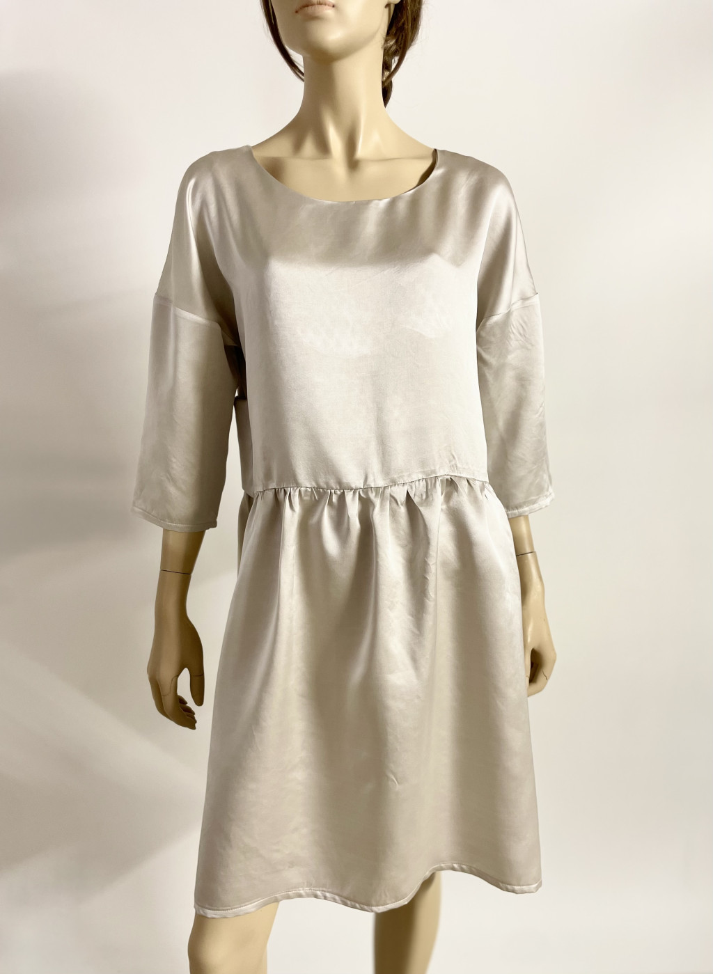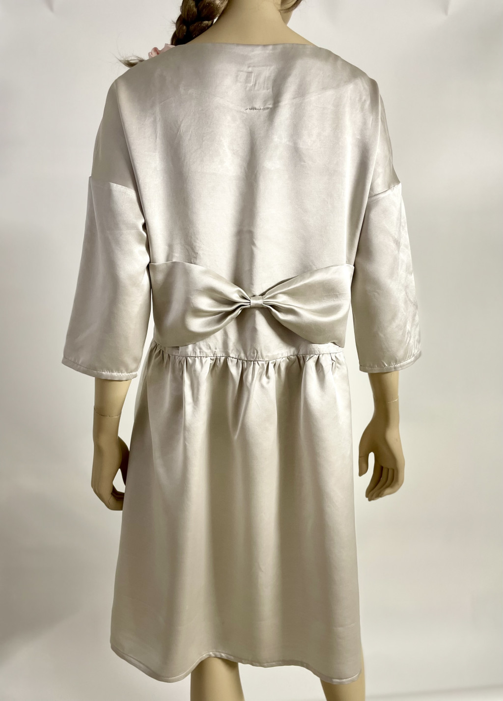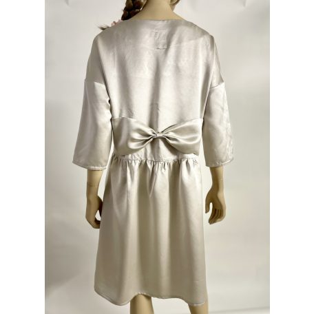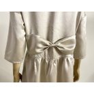 Ha szereted a természetes anyagokat, mely lágysága, letisztultsága, gyönyörű fénye, puha tapintása magával ragad, és szereted a masnikat, akkor válaszd ezt a pezsgő színű pamut-selyem masnis ruhát, mely lezser, de mégis exluzív mejelenést biztosít számodra, válaszd a ,,csendes luxust"! Tökéletes választás esküvőkre, keresztelőkre vagy bármilyen jeles családi eseményre, ahol a visszafogott, mégis luxus hatást keltő elegancia a cél.