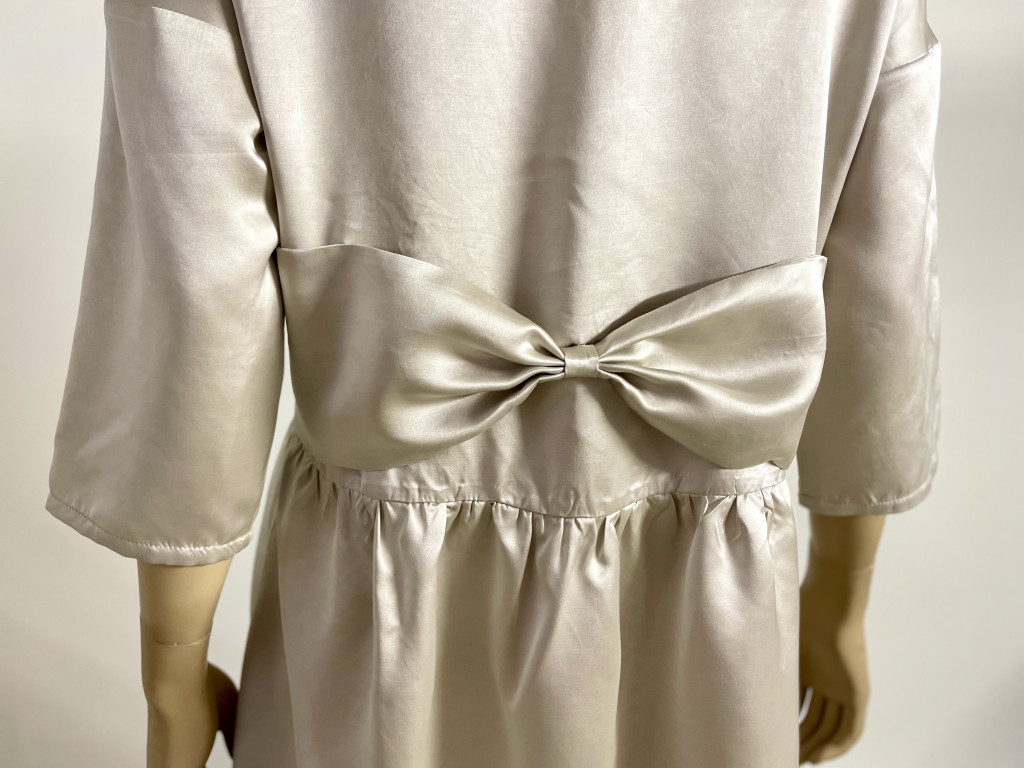 Miért érdemes ezt a pezsgő színű pamut-selyem masnis ruhát választanod?